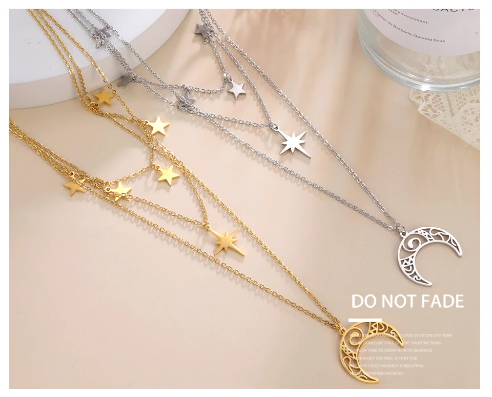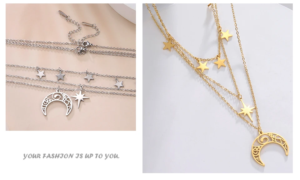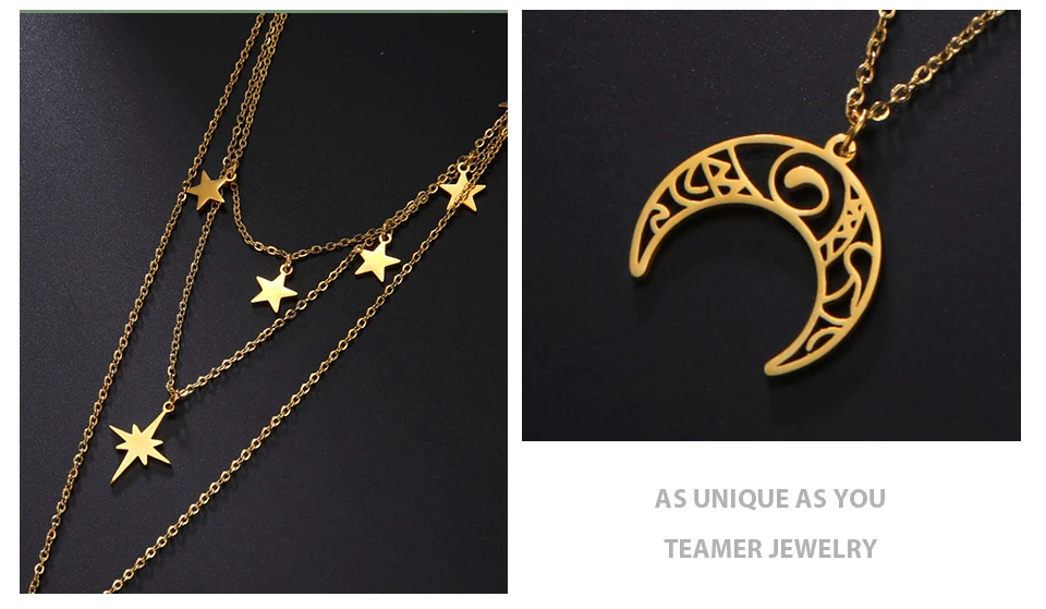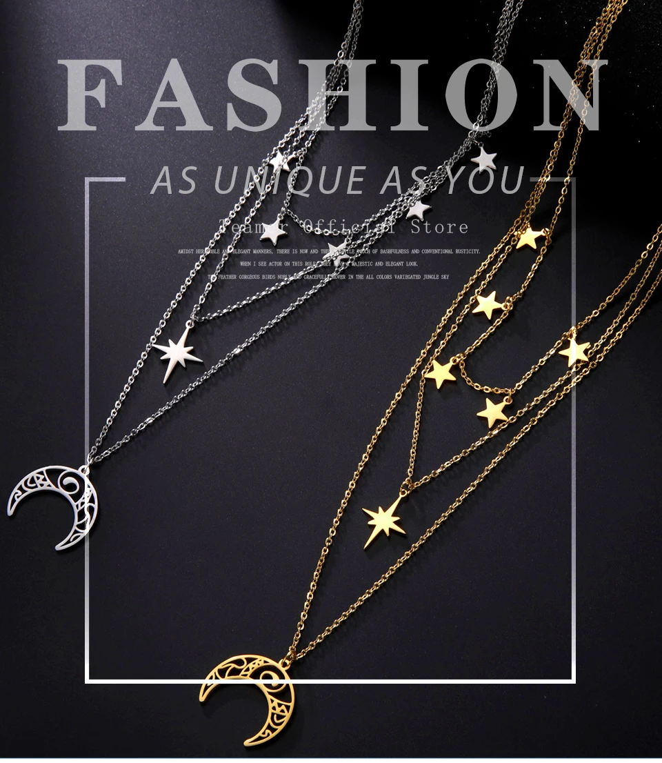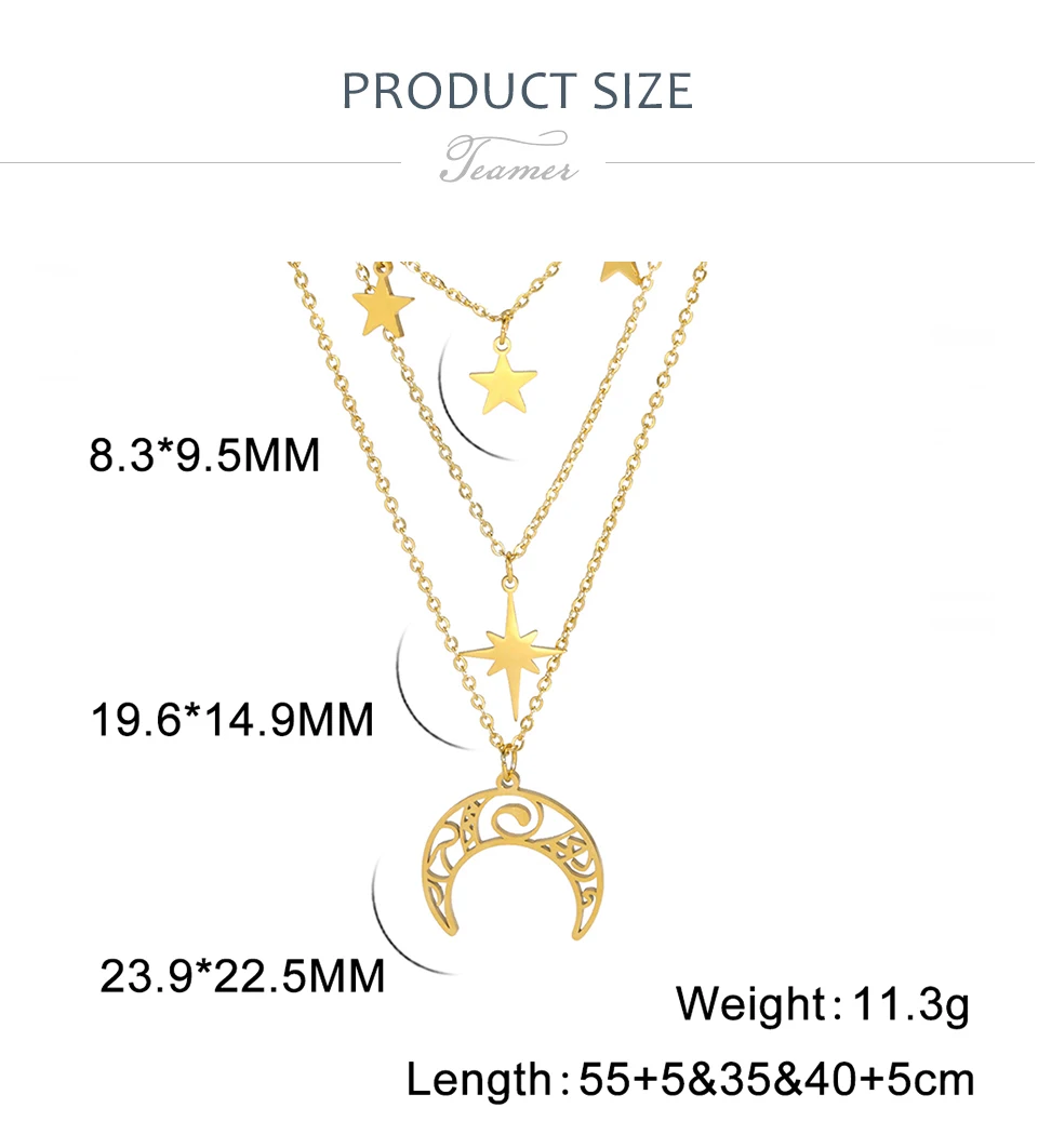 Teamer Three Layer Witchy Necklace for Women Star Moon Stainless Steel Necklaces Choker 2022 Layered Jewelry Clavicle Chain Gift